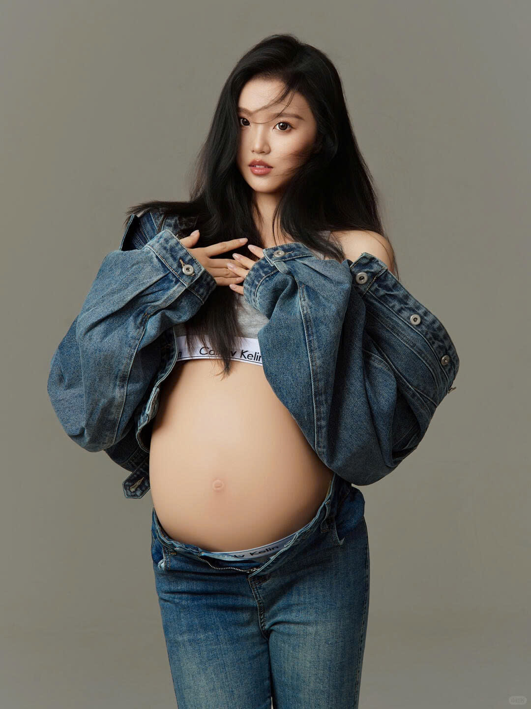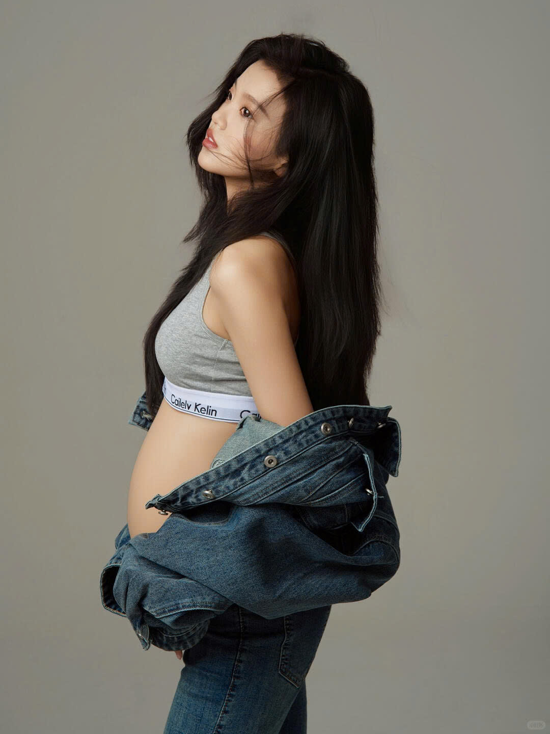 Không cần váy lụa cầu kỳ, chỉ với denim bụi bặm và crop top đơn giản, mẹ bầu vẫn tỏa sáng theo cách rất riêng – vừa mạnh mẽ, vừa dịu dàng.